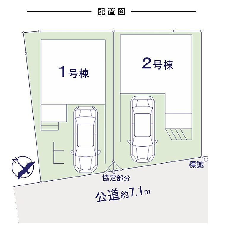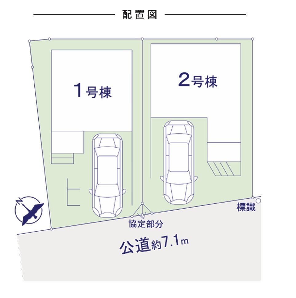| 駐車場 | 1台 | 道路の幅員 | 1号棟:南西7.1m /2号棟:南西7.1m |