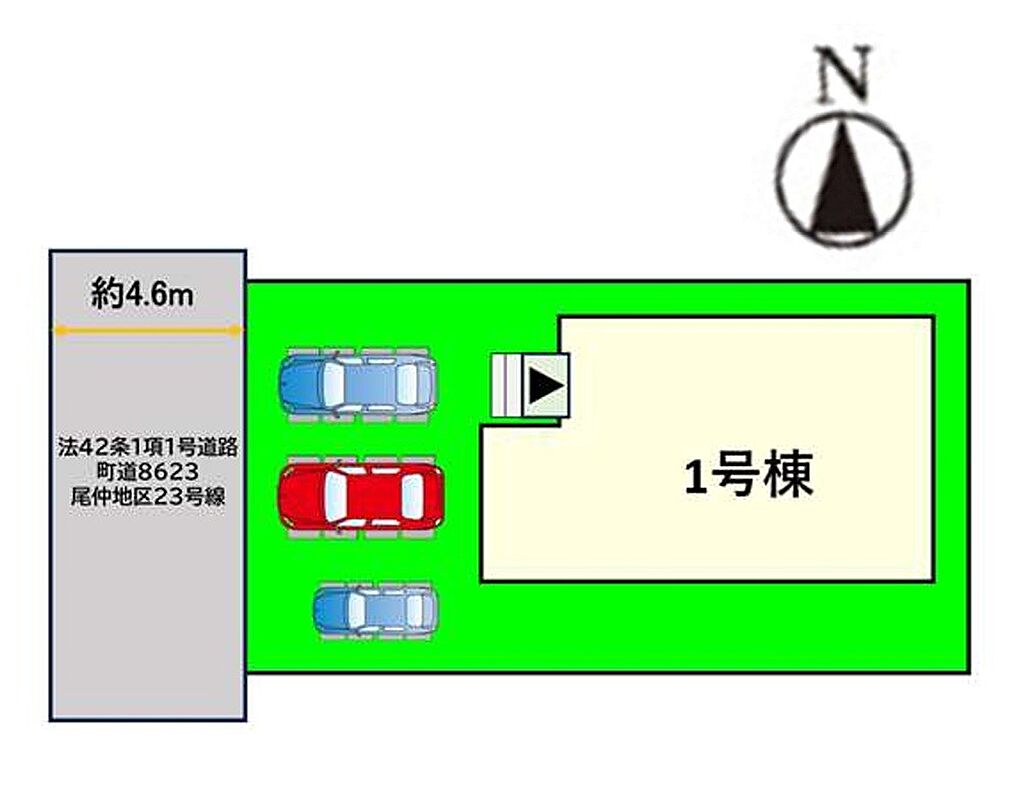 | 駐車場 | 3台 | 道路の幅員 | 1号棟:西4.6m |