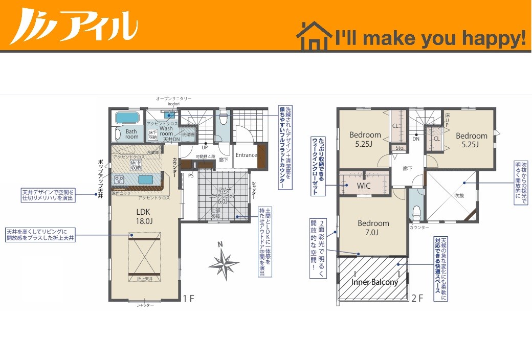 ◆土地133.94m2・LDK18帖の折上天井+吹抜で開放感たっぷり◆リビング3面採光・インナーバルコニー・WIC・マルチエントランス完備、耐震等級3+制震ダンパーで安心◆中学校徒歩2分・公園徒歩3分