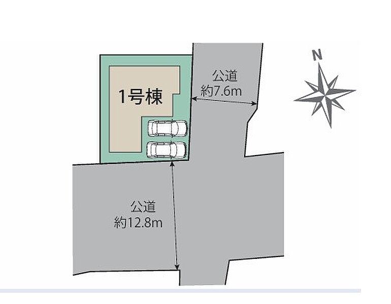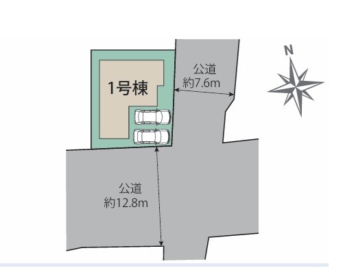 | 駐車場 | 2台 | 道路の幅員 | 1号棟:東7.6m 南12.8m |