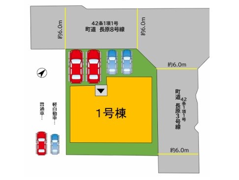 | 駐車場 | 4台 | 道路の幅員 | 1号棟:北西6m 北東6m |