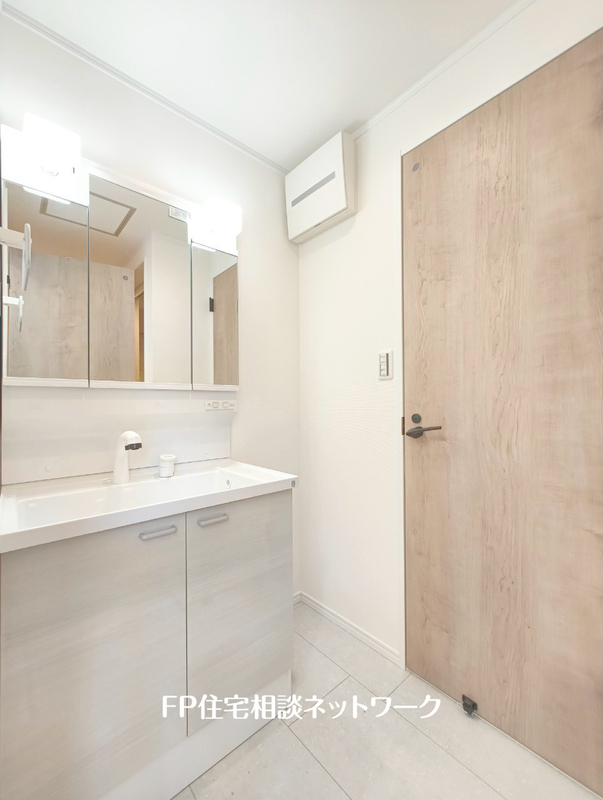 ゆとりの洗面スペースで朝の身支度も快適スムーズに。三面鏡で髪の...