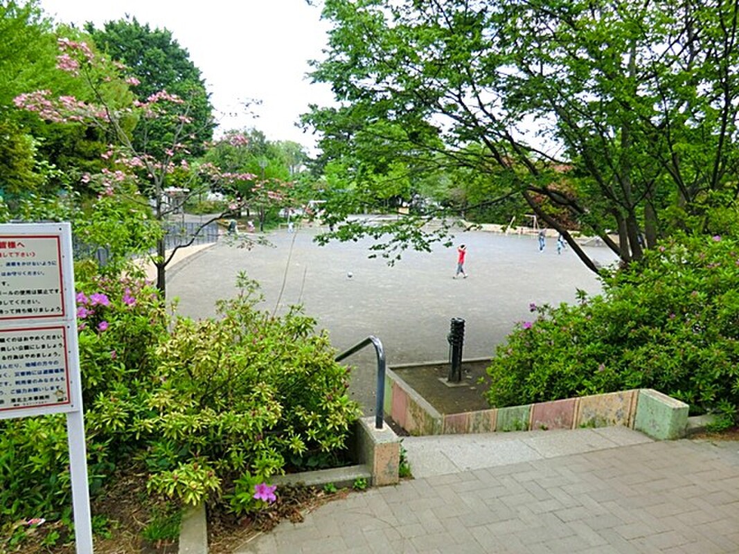 走り回れる大きな広場のある公園。滑り台やブランコなどの遊具の他...