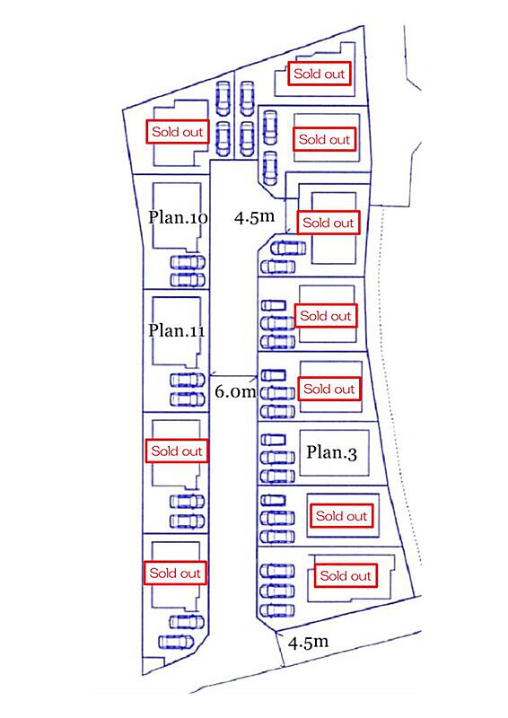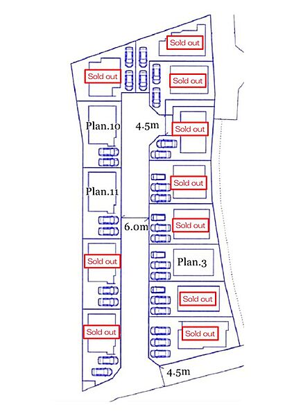 | 駐車場 | 2台 ~ 3台(8~11号棟(2台)、1~5号棟(3台)) | 道路の幅員 | 4.5m~6m |