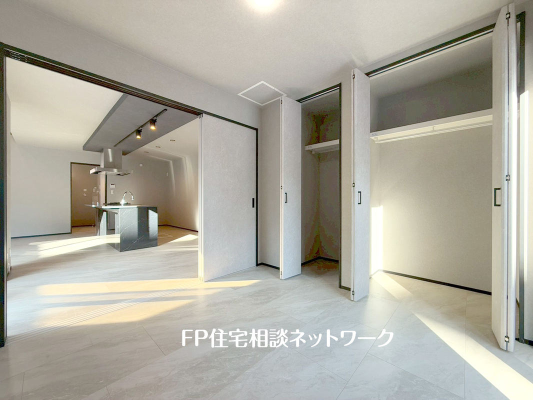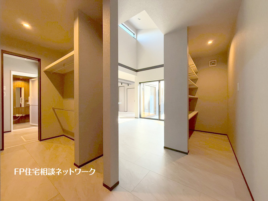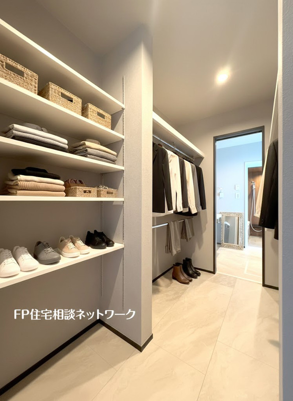 ・リビングそばにL字型の大型ファミリークローゼットを2箇所配置。洗面室へ直結する家事動線を極めた設計。
