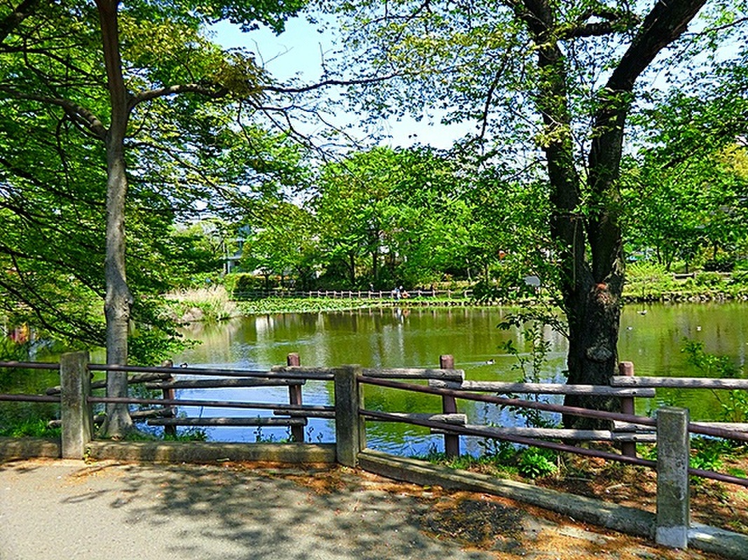 大きな池のある緑豊かな公園。春になると池の周りの桜がキレイに咲...