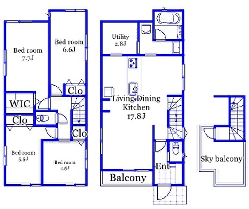 ・4LDKの充実間取り パントリー(A棟) WIC、ユーティリティスペース(B棟) 19.7帖の広々LDK(C棟)
