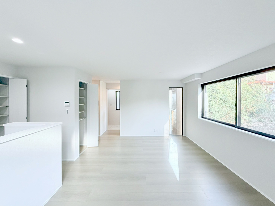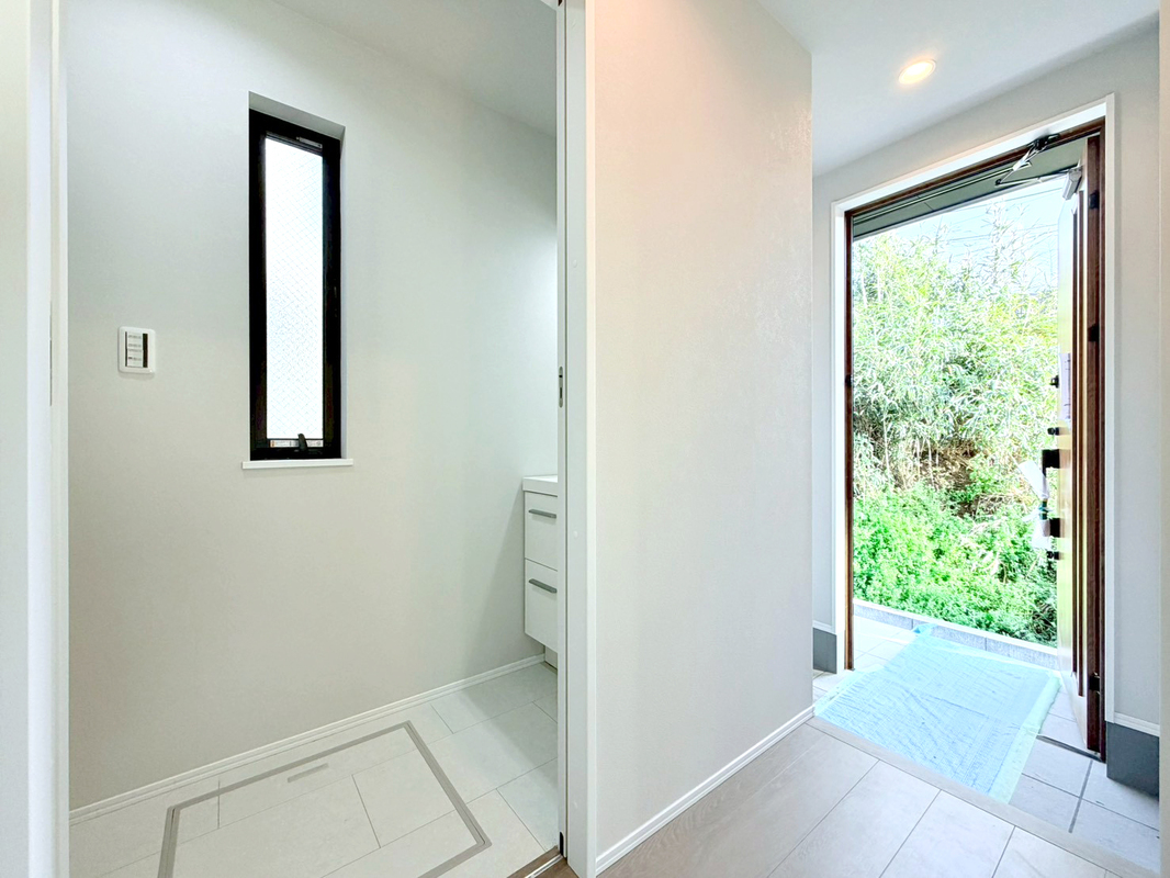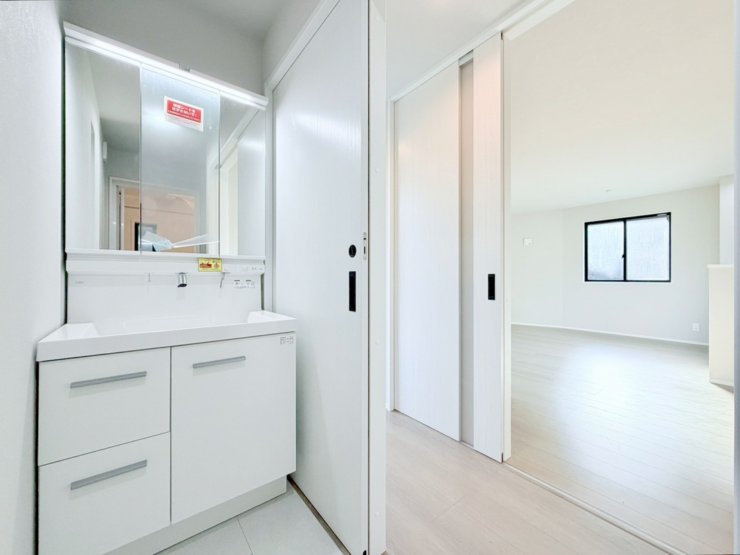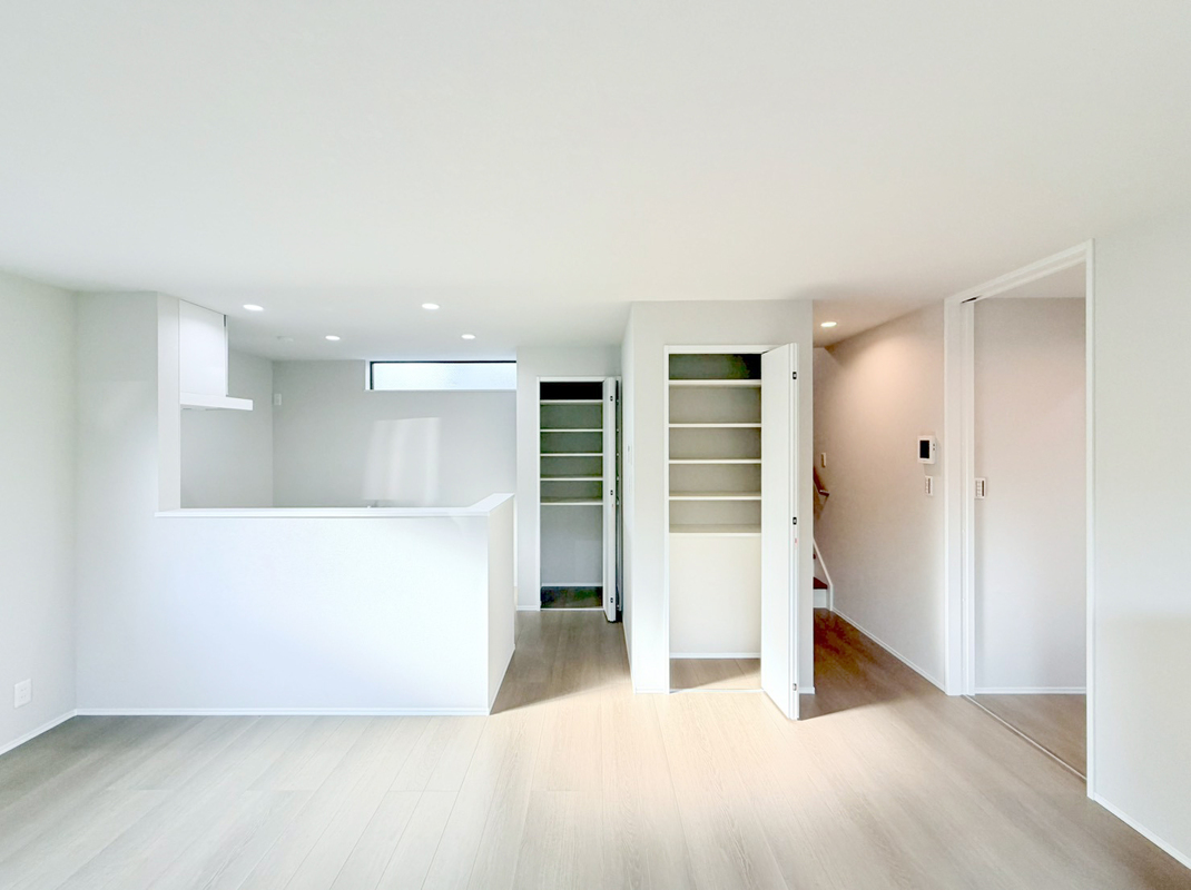 ・3面採光の明るいLDK パントリー×リビング収納 ウォークイン 玄関のすぐ側に洗面・浴室を配置。