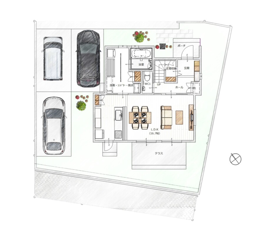 - ※完成予想図やCG合成画像は、門塀・植栽・庭・外観等、実際とは多少異なる場合があります。
