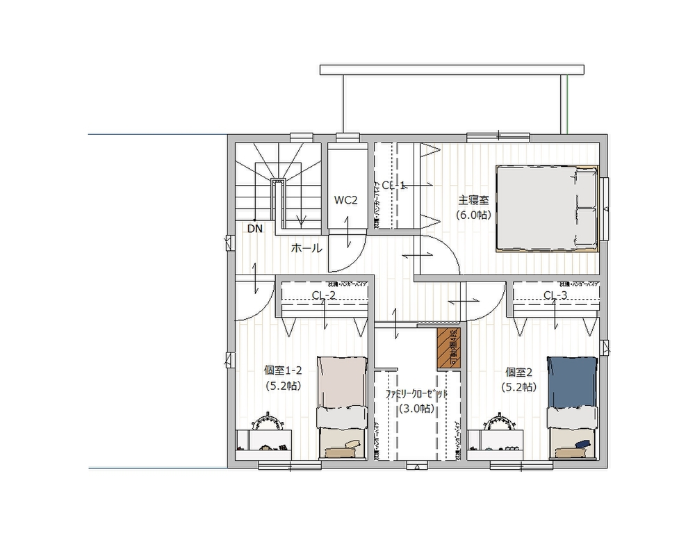 - ※完成予想図やCG合成画像は、門塀・植栽・庭・外観等、実際とは多少異なる場合があります。