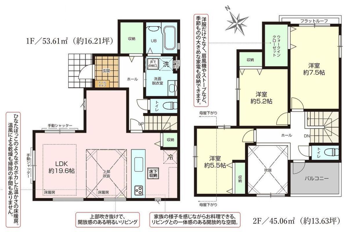 ・1階に水回りを集中した「家事楽動線」