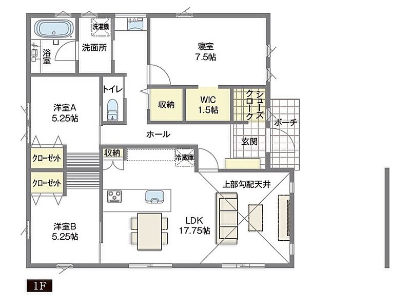 1台分のインナーガレージは収納や多目的スペースとしても活用でき、