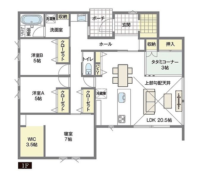 LDKは畳コーナーを含め23.5帖の広々とした間取り。