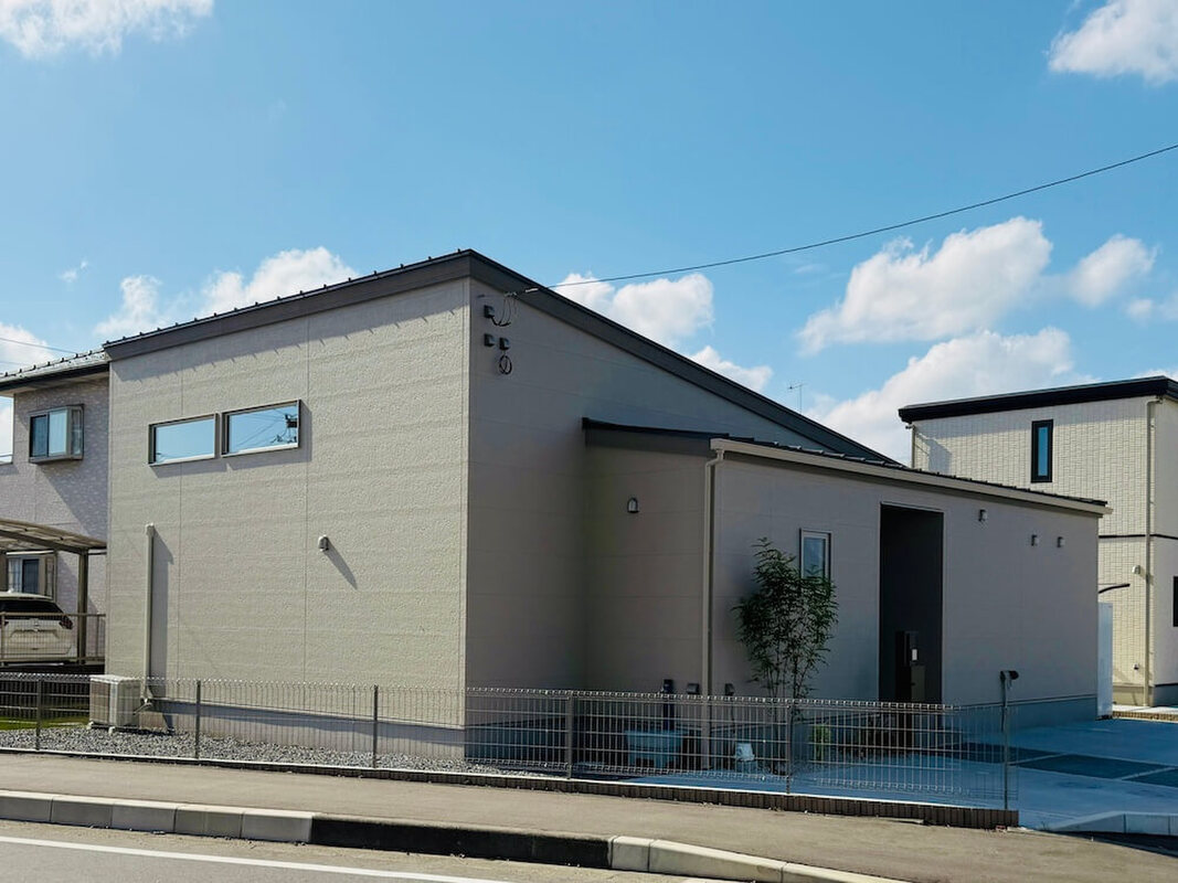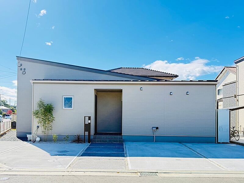 魅力3 大きな片流れ屋根に塗り壁風のサイディングがおしゃれな平屋