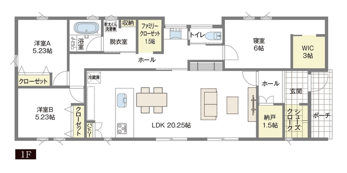 魅力1 収納力と動線設計で叶える、公私を分けた平屋