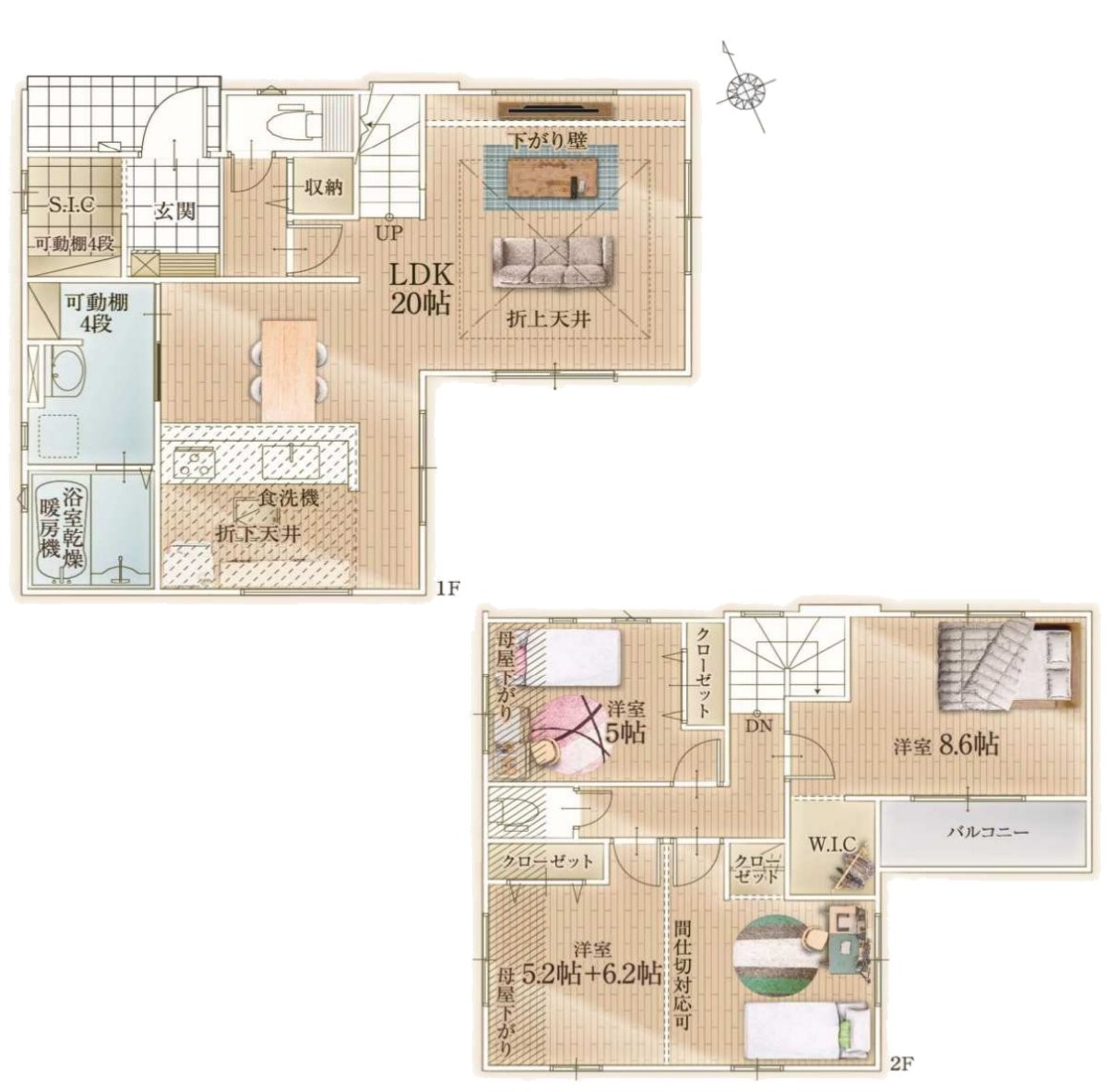 - ※完成予想図やCG合成画像は、門塀・植栽・庭・外観等、実際とは多少異なる場合があります。
