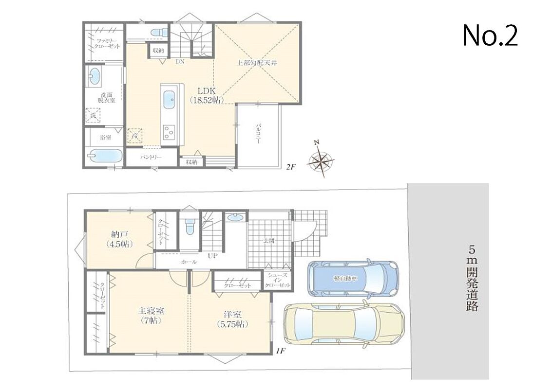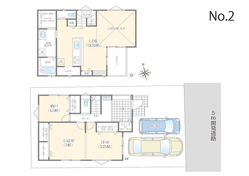 | 駐車場 | 2台 | 道路の幅員 | No.2:東5m |
