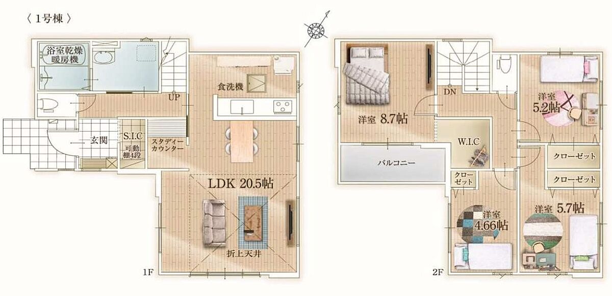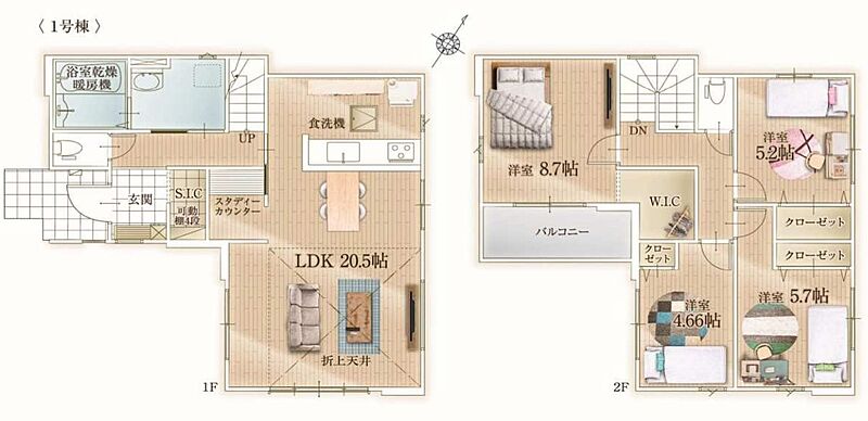 - ※完成予想図やCG合成画像は、門塀・植栽・庭・外観等、実際とは多少異なる場合があります。