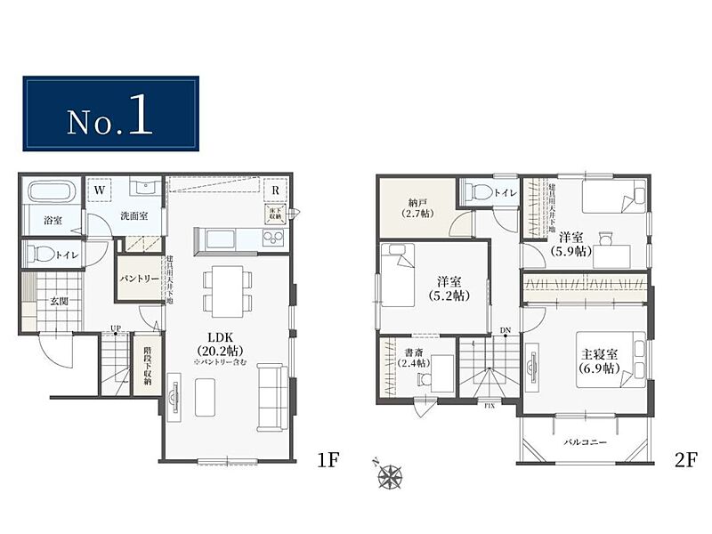 | 駐車場 | 2台 | 道路の幅員 | 2号棟:南西6.4m /1号棟:南西6.4m |