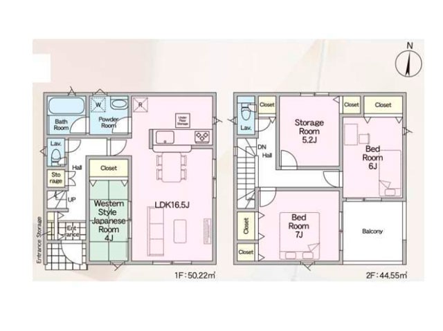 | 建物面積 | 94.77m2 | 土地面積 | 122.15m2~134.42m2<1号棟 私道負担面積95m2 私道負担割合1/1 2号棟 私道負担面積95m2 私道負担割合1/1> |