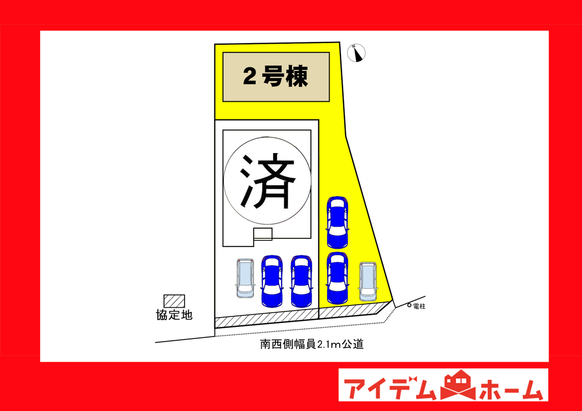 | 駐車場 | 2台 ~ 3台 | 道路の幅員 | 南側幅員2.1m公道 |