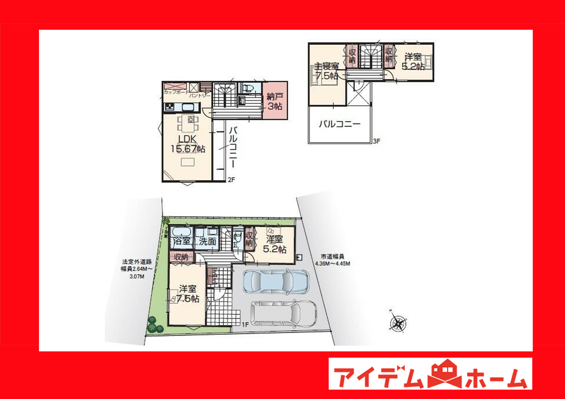 制震Kダンパー採用の地震に強い4LDK!並列駐車2台可!
