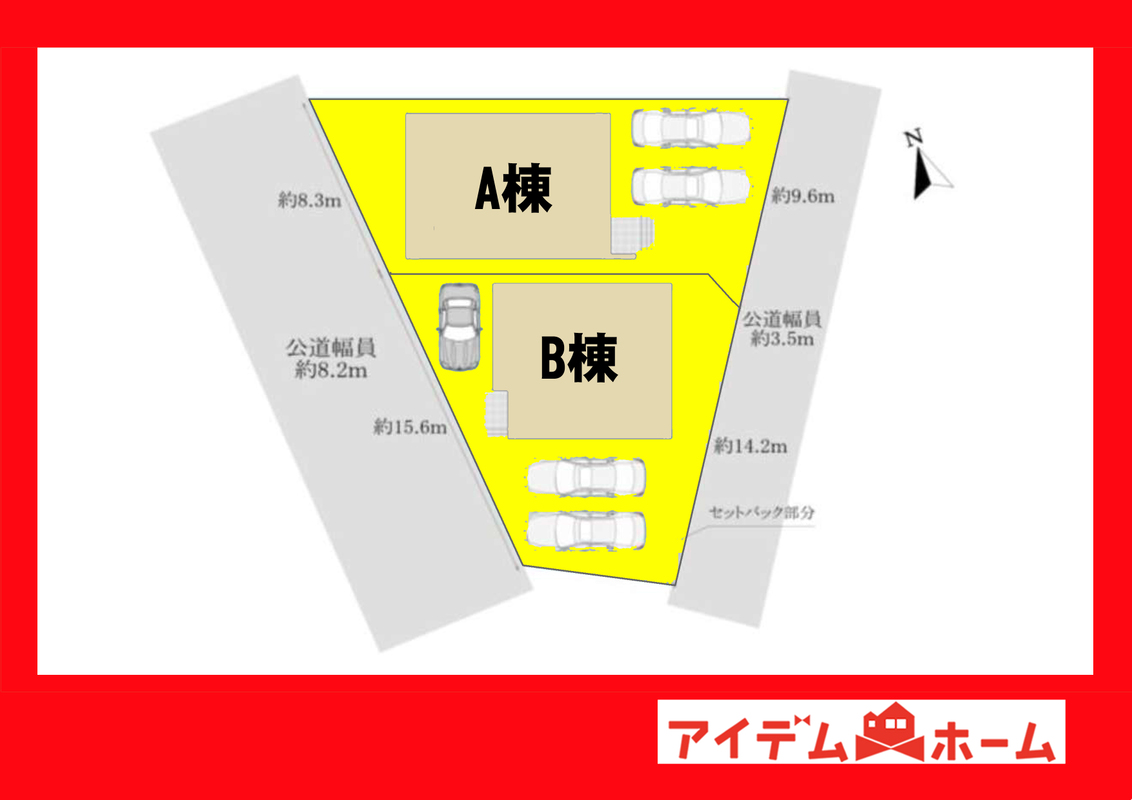 | 駐車場 | - | 道路の幅員 | 南東側3.5m、南西側8.2m |