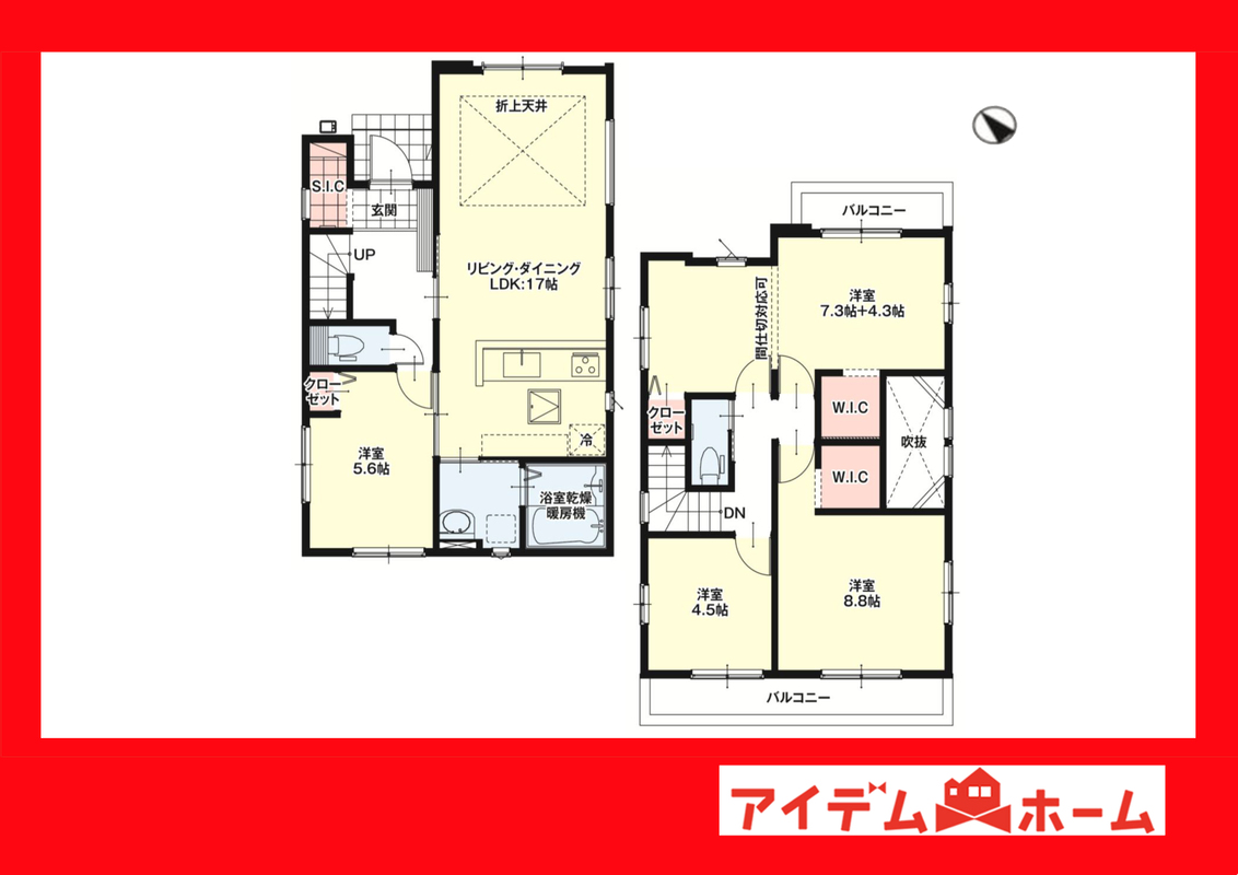 WIC・SIC完備でお部屋スッキリ!2階洋室将来間仕切り可能!