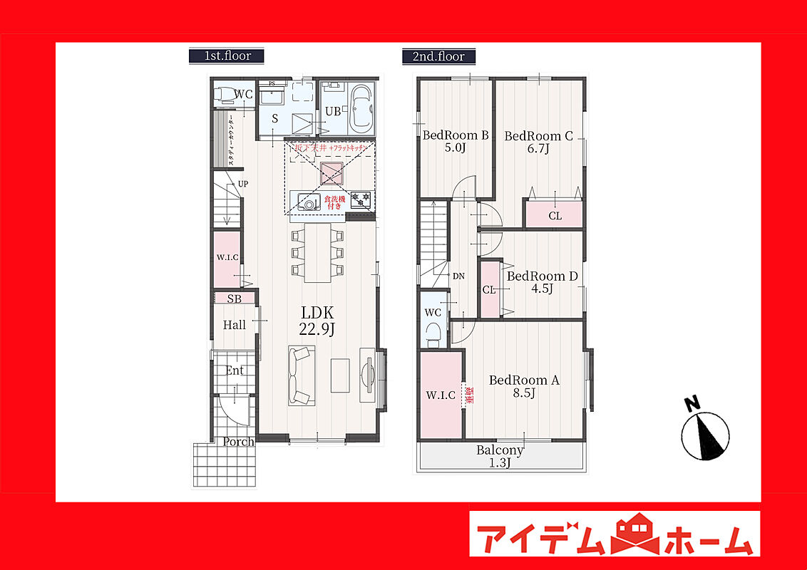 WIC完備でお部屋スッキリ!家事が楽になる食洗機を標準搭載!