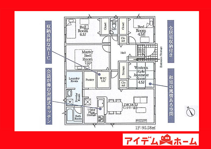 魅力3 ウォークインクローゼット等収納豊富な間取り!