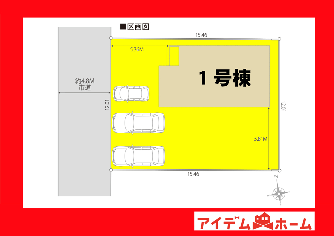 | 駐車場 | 2台 ~ 3台 | 道路の幅員 | 西側幅員4.8m公道 |