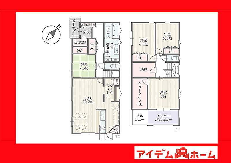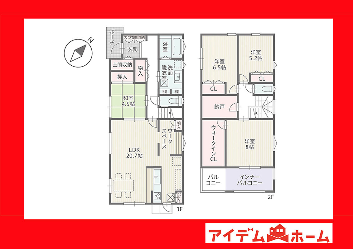 大型WIC&納戸・土間収納など収納充実な間取り!住宅性能評価書・耐震等級3取得!