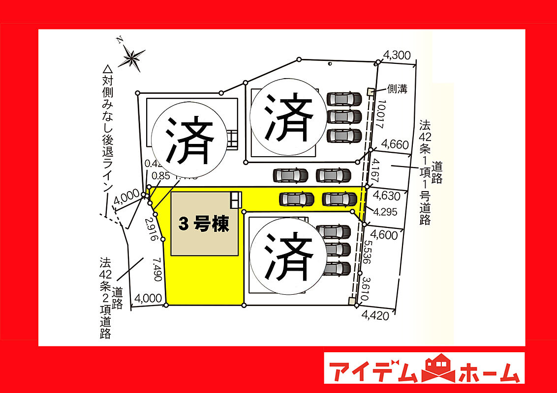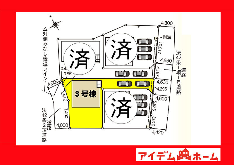 | 駐車場 | 1台 ~ 3台 | 道路の幅員 | 南東側幅員4.3~4.6m公道 |