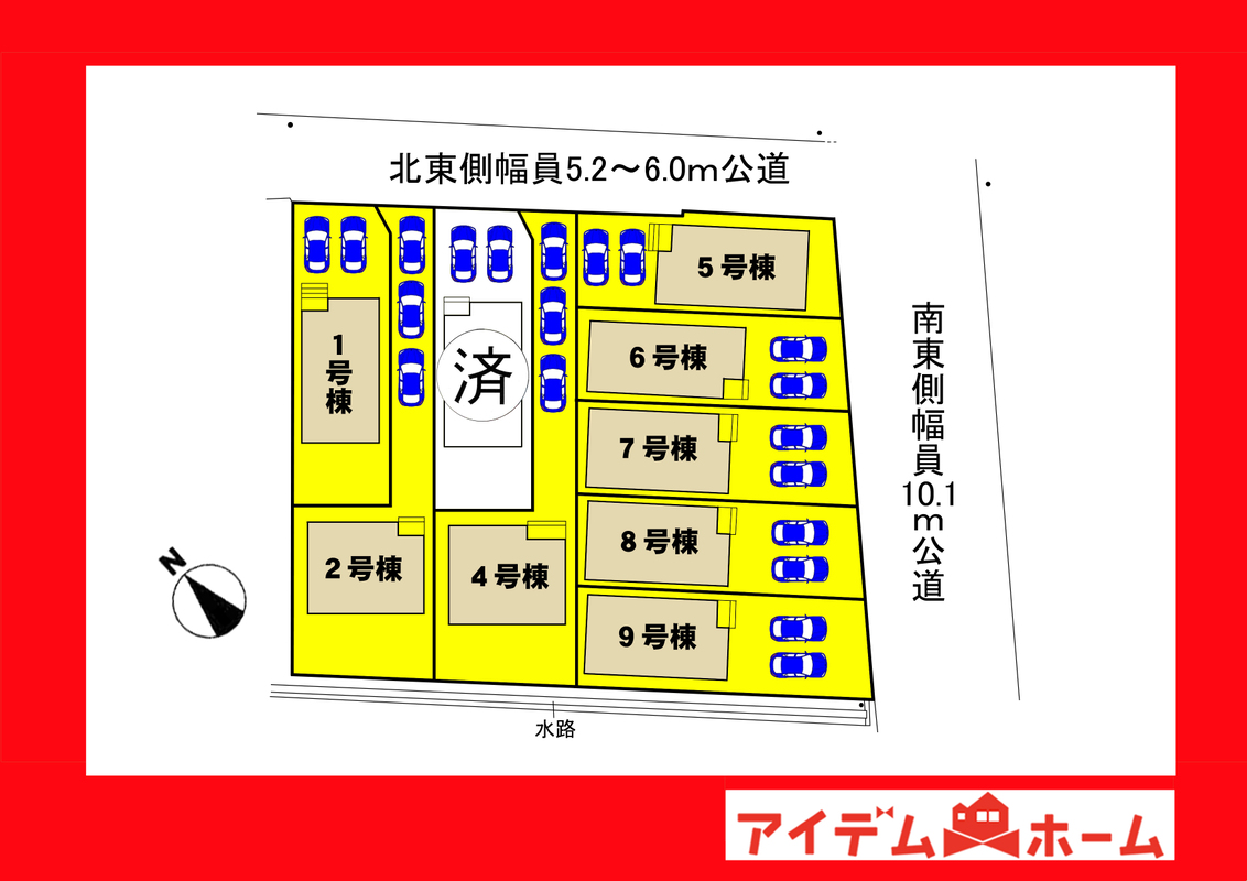 | 駐車場 | 1台 ~ 2台 | 道路の幅員 | 北東側幅員5.2m公道、南東側幅員10.1m |