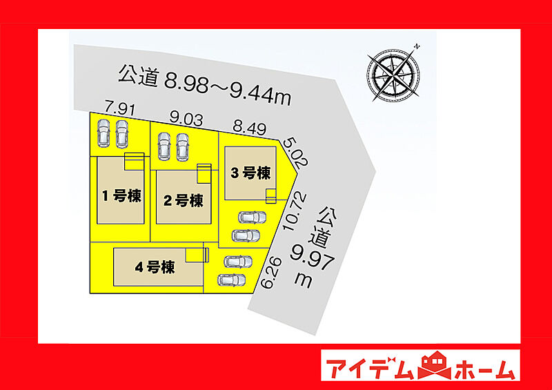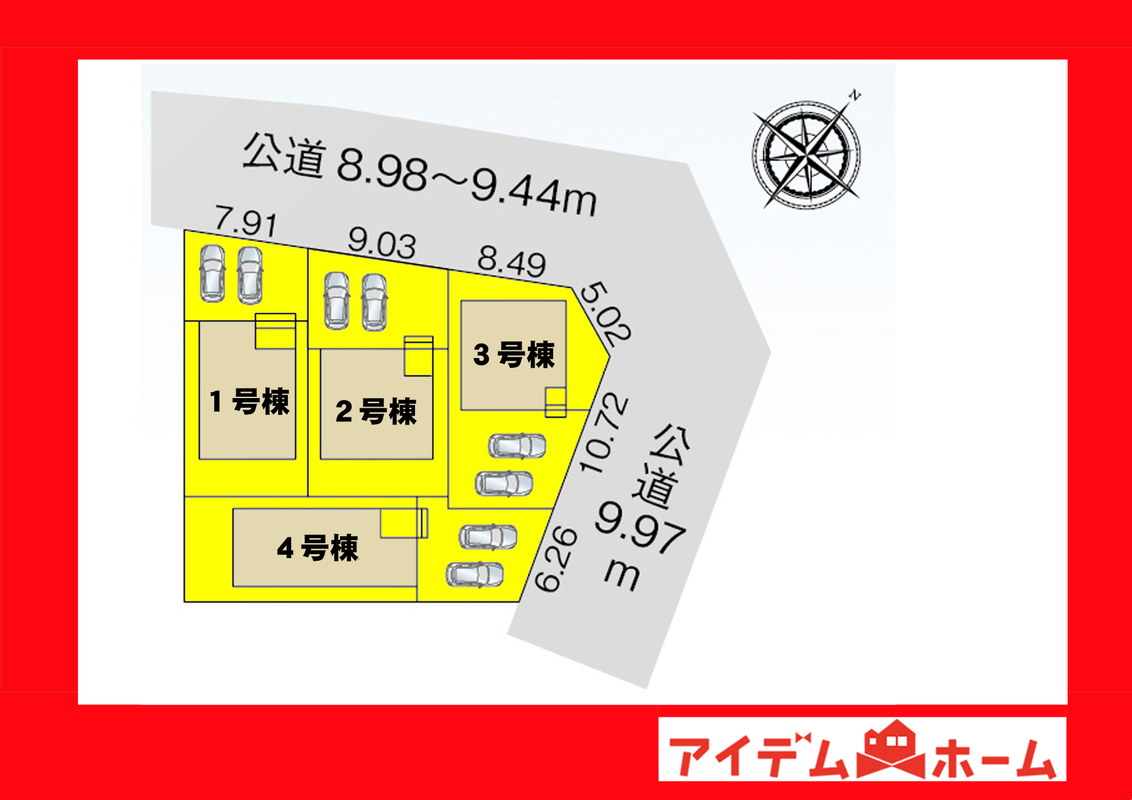 | 駐車場 | 1台 ~ 2台 | 道路の幅員 | 東側幅員9.9m公道、北側幅員8.9m公道 |
