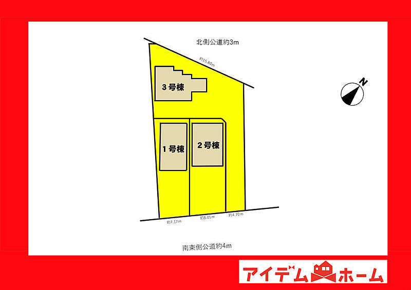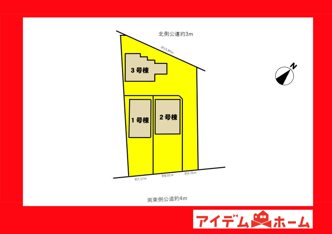 | 駐車場 | 1台 ~ 4台 | 道路の幅員 | 南東側幅員約4m公道 |