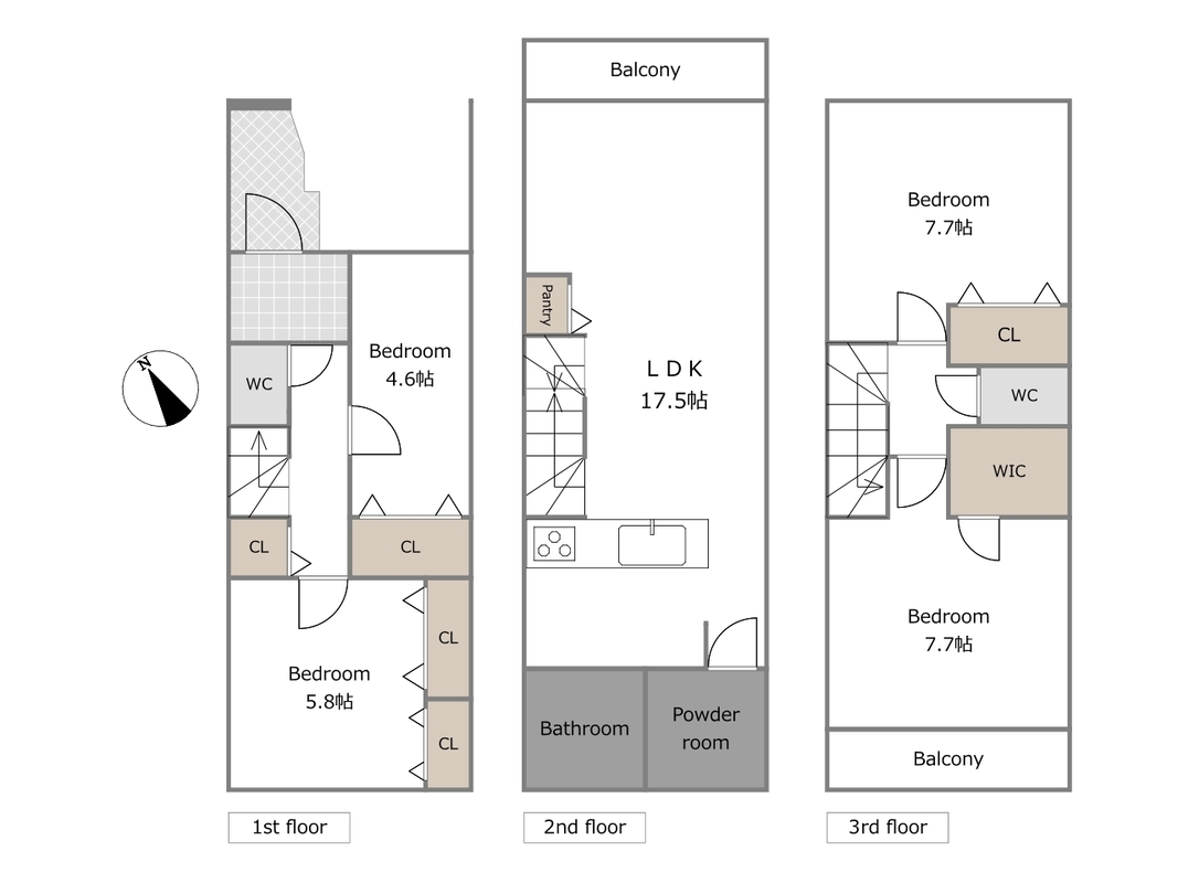●7帖超えの寝室が2つ・ゆったりWIC付き