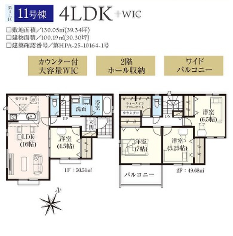 11号棟 間取り 4LDK+WIC 価格 3280万円 建物面積 100.19m2 土地面積 130.05m2