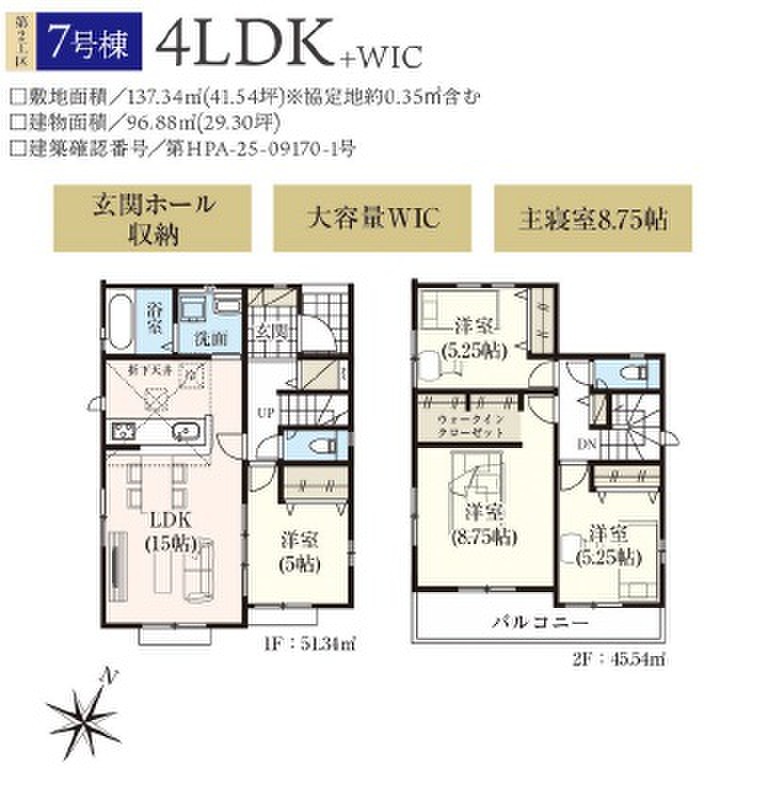 7号棟 間取り 4LDK+WIC 価格 2780万円 建物面積 96.88m2 土地面積 137.34m2 -