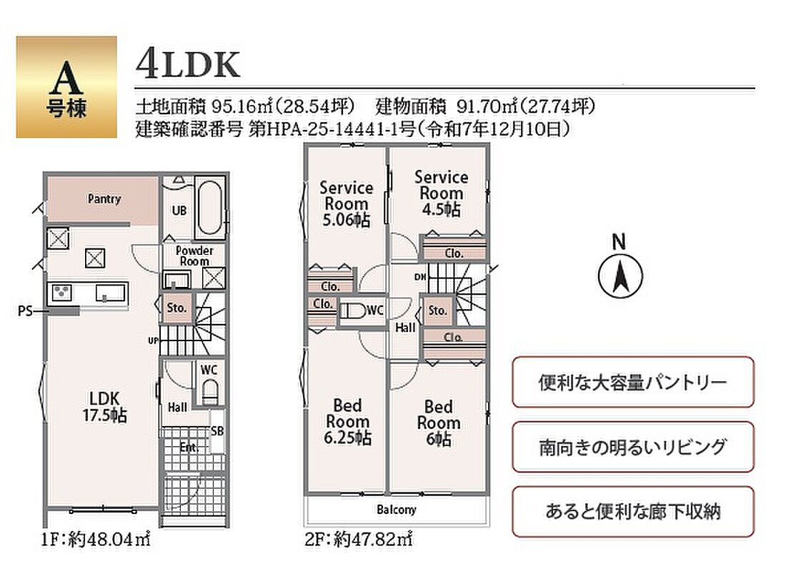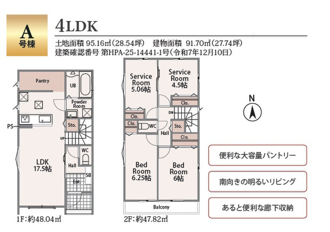 A号棟 間取り 4LDK 価格 6390万円 建物面積 91.70m2 土地面積 95.16m2 -