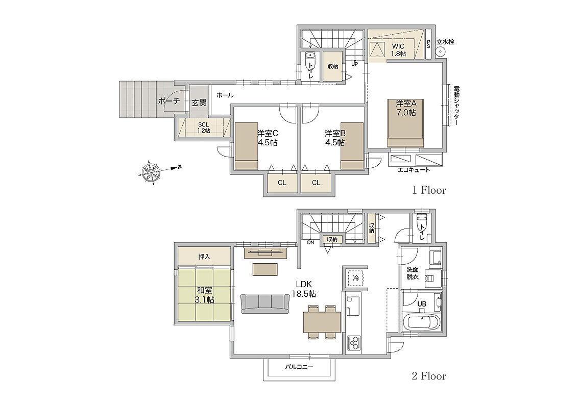 魅力3 【全棟】4LDK×2台駐車×WIC・SCL収納充実