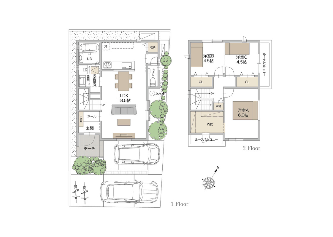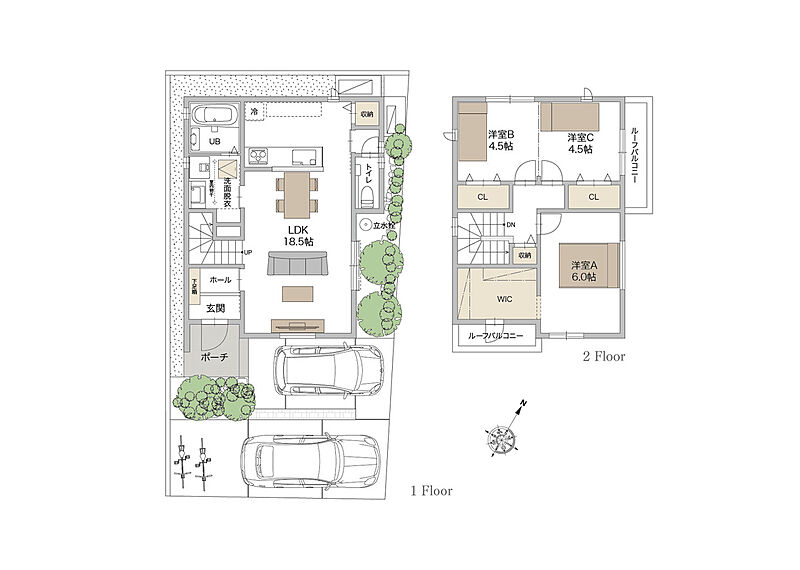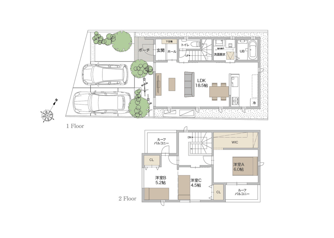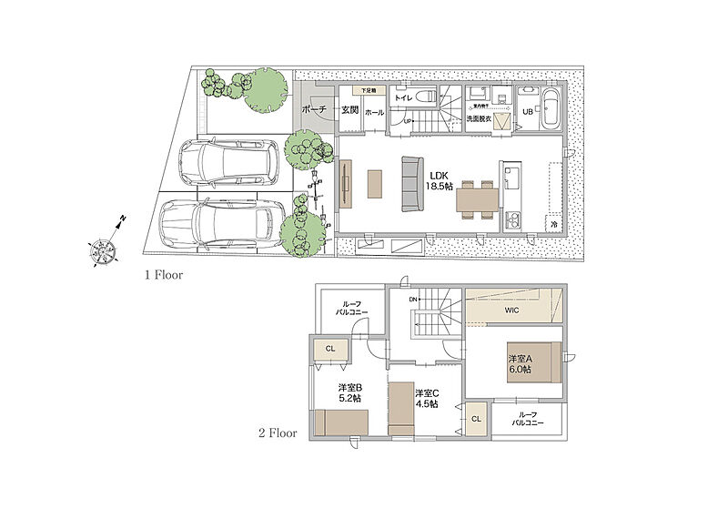 - ※完成予想図やCG合成画像は、門塀・植栽・庭・外観等、実際とは多少異なる場合があります。