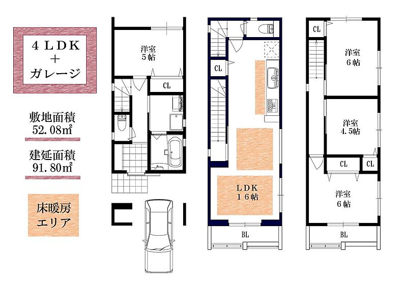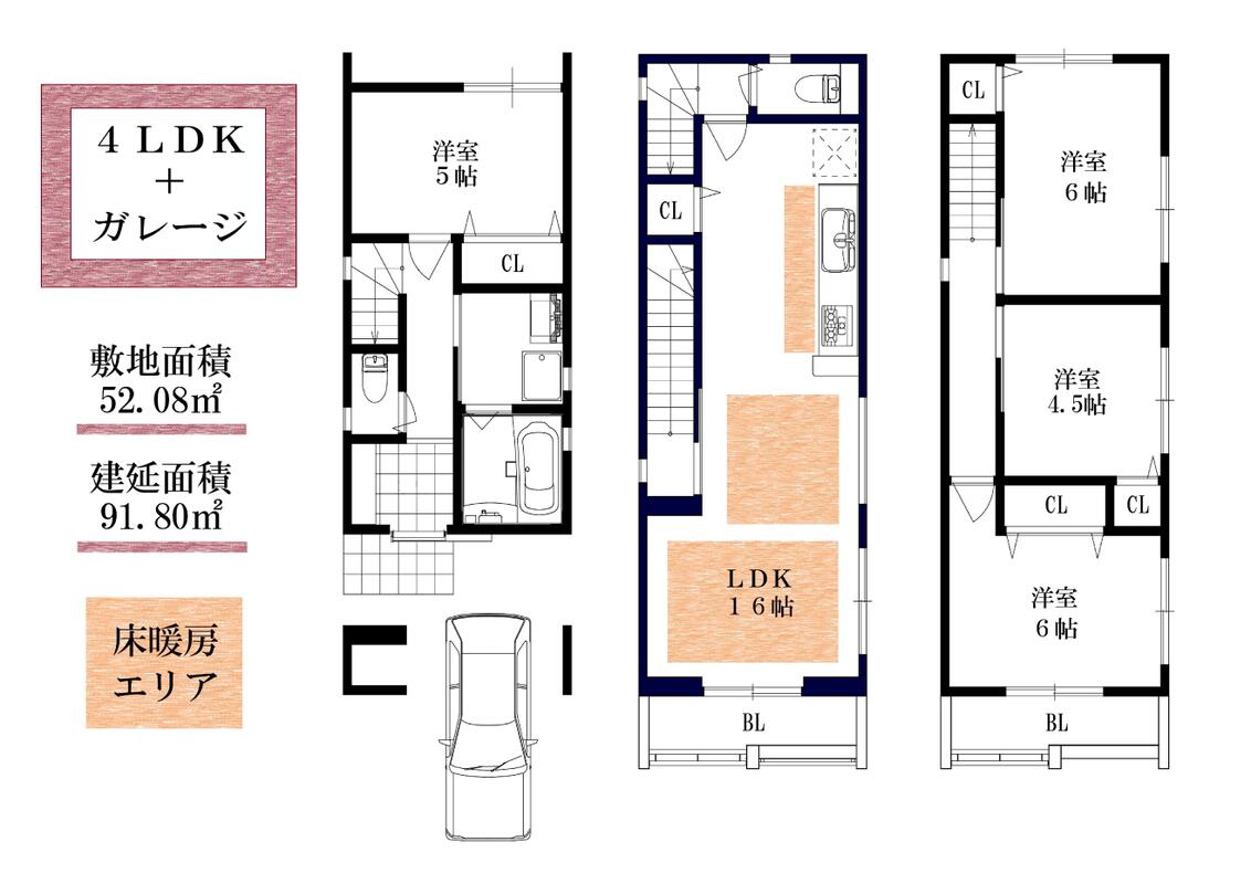 | 建物面積 | 91.8m2 | 土地面積 | 52.08m2 |