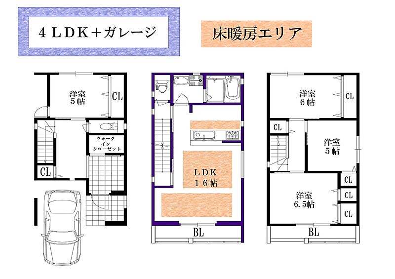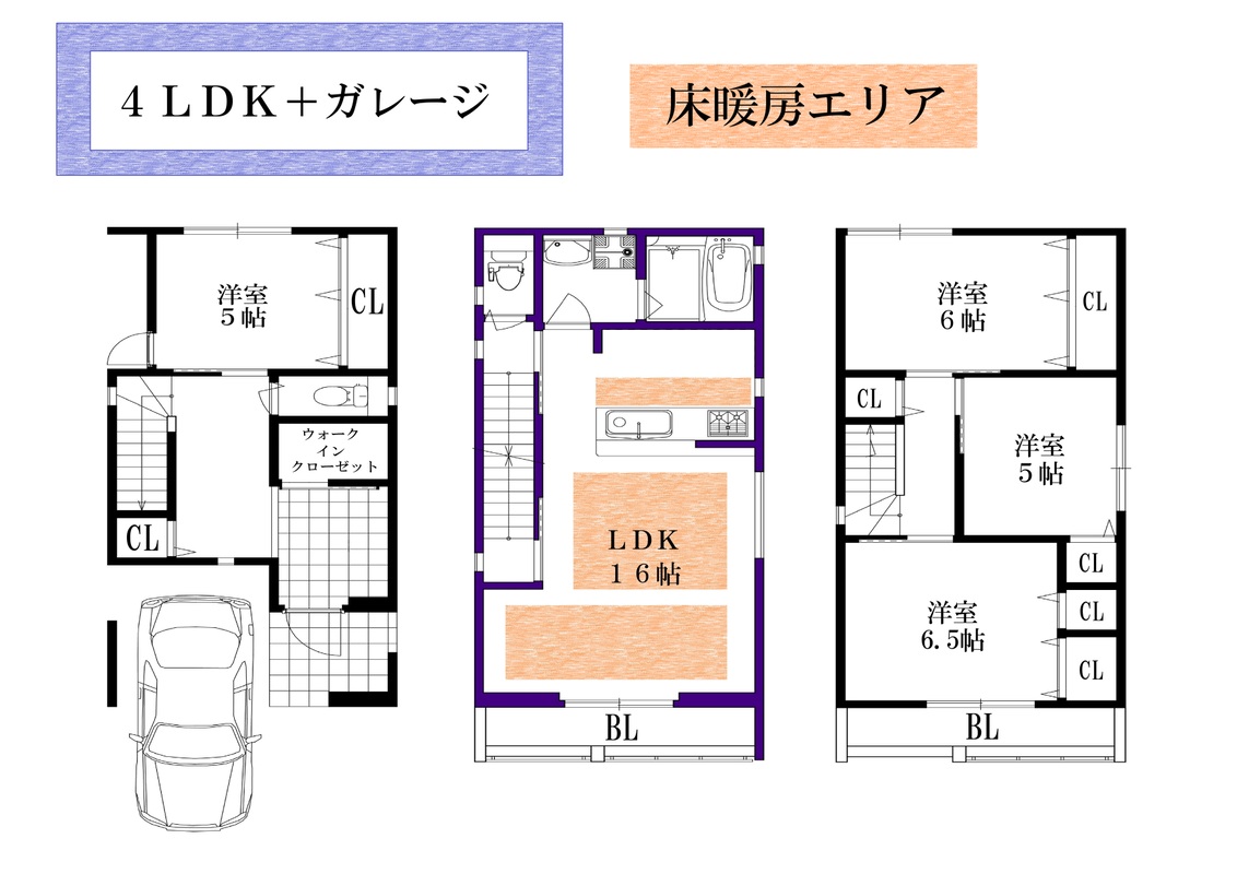 - 4LDK+ガレージ又は3LDK+ガレージ