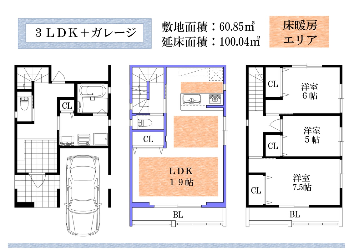 | 間取り | 3LDK+ガレージ/4LDK+ガレージ | 建物構造 | 木造3階建 |