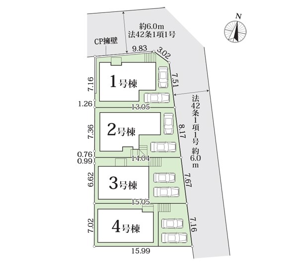 | 駐車場 | 2台 | 道路の幅員 | 2号棟:東6m |