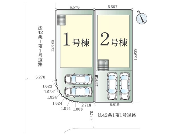 | 駐車場 | 2台 | 道路の幅員 | 2号棟:南西4.4m |