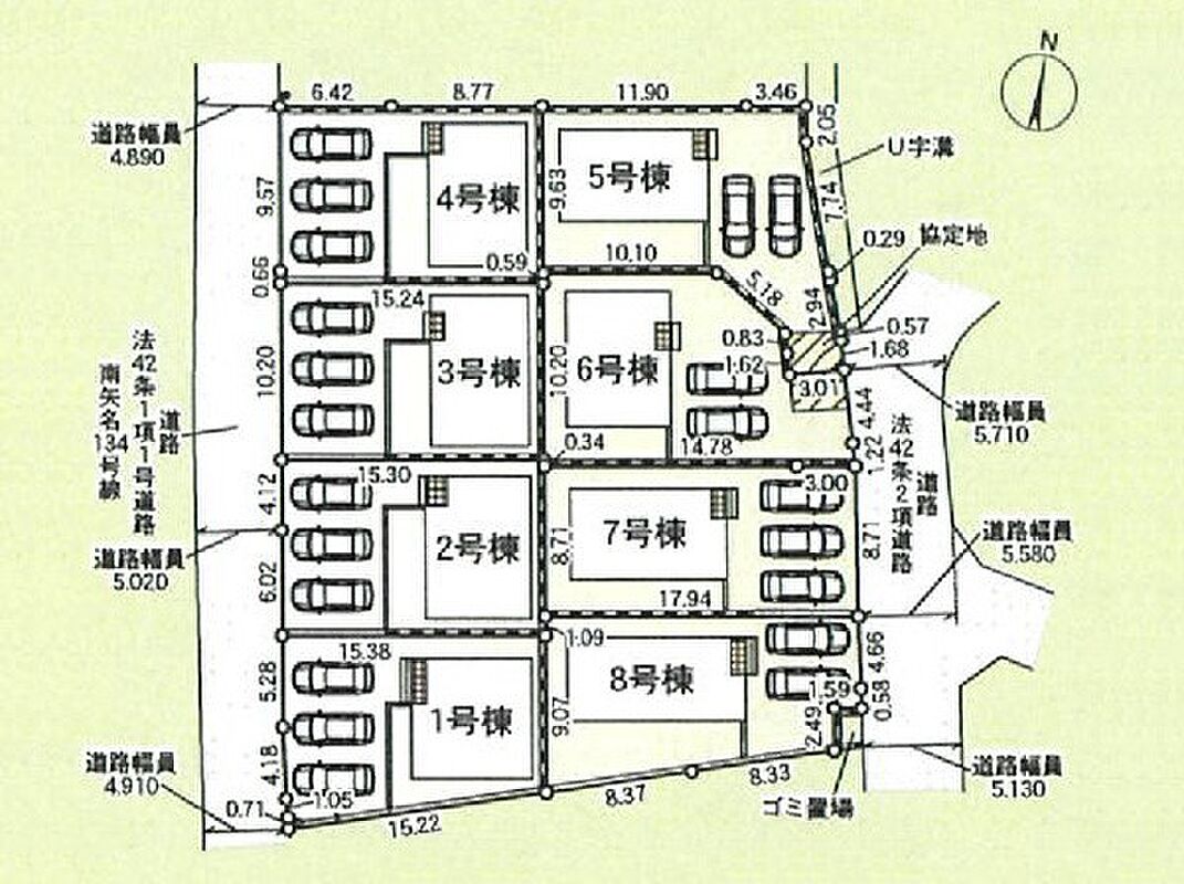| 駐車場 | 3台 | 道路の幅員 | 1号棟:西4.7m /6号棟:東5.3m /4号棟:西4.8m |