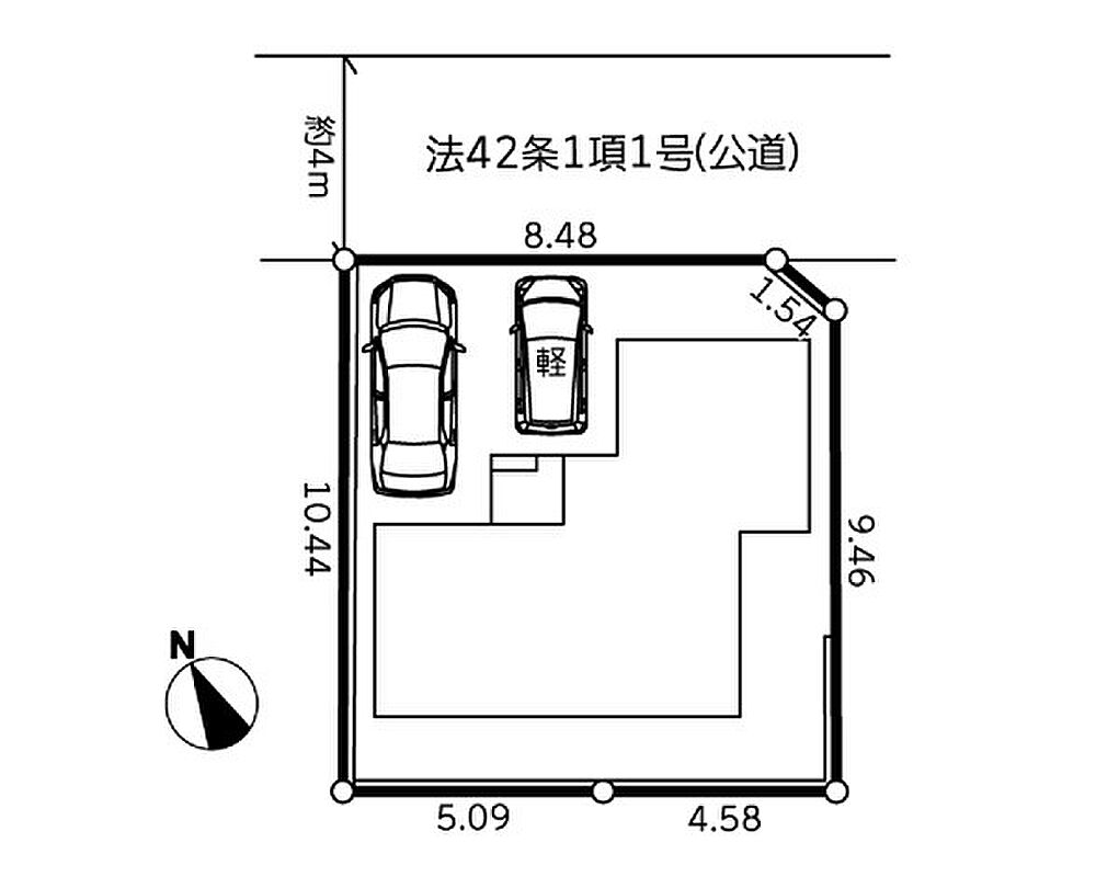 | 駐車場 | 2台 | 道路の幅員 | :北西4m |