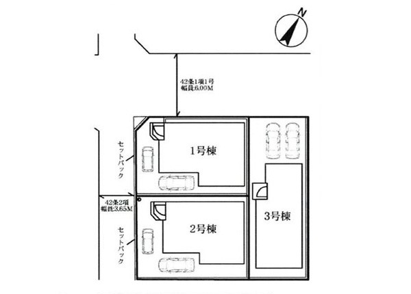 | 駐車場 | 2台 | 道路の幅員 | 3号棟:北西6m |